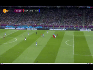 Goal 1: Great ball in from Iniesta to Fabregas. Chiellini failing to mark him well lets him in easily. Buffon had to tighten the angle at the near post, so he comes out. Fabregas crosses and one of the shortest players in the pitch scores a header. I don’t think Barzagli and Bonucci got good sleep the previous night. They were found napping on the pitch. Silva gets an open goal to fire Spain in front.