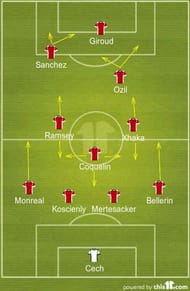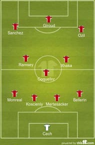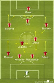 The Gunners could line up in a more or less 4-3-1-2 formation with Bellerin and Monreal providing them the width in their play. The full backs will have a greater importance in this formation than in the 4-2-3-1 formation.