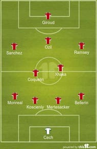 Cech will continue as the No.1 in goal and the back line of Hector Bellerin, Per Mertesacker, Laurent Koscielny and Nacho Monreal is unlikely to be changed unless they sign a new centre-back or a left-back. Coquelin is likely to continue in the holding midfielder role whereas Xhaka will be expected to replace Cazorla and play as a more or less box to box midfielder.