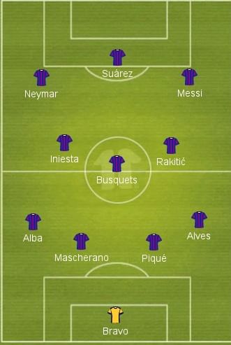 The much familiar 4-3-3 formation for Barcelona this season could feature Luis Suárez in the role of the central striker, with both Lionel Messi and Neymar as wide attackers manning the wings.