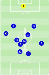 This following image showing average positions of the Everton team will further help in relating to the above points: