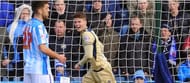 James Vaughan, resplendent in his face mask, won a corner for Town on 25 minutes after the hard working Austin blocked his goal bound shot. Butterfield lined up the corner as Vaughan, Steve Morison and Marco Silvestri jostled for position on the goal line. The ball went deep to the back post where Bunn came from nowhere to head home the equaliser to the delight of the drum thumping home fans. 1-1. Poor defending from Silvestri I'm afraid.