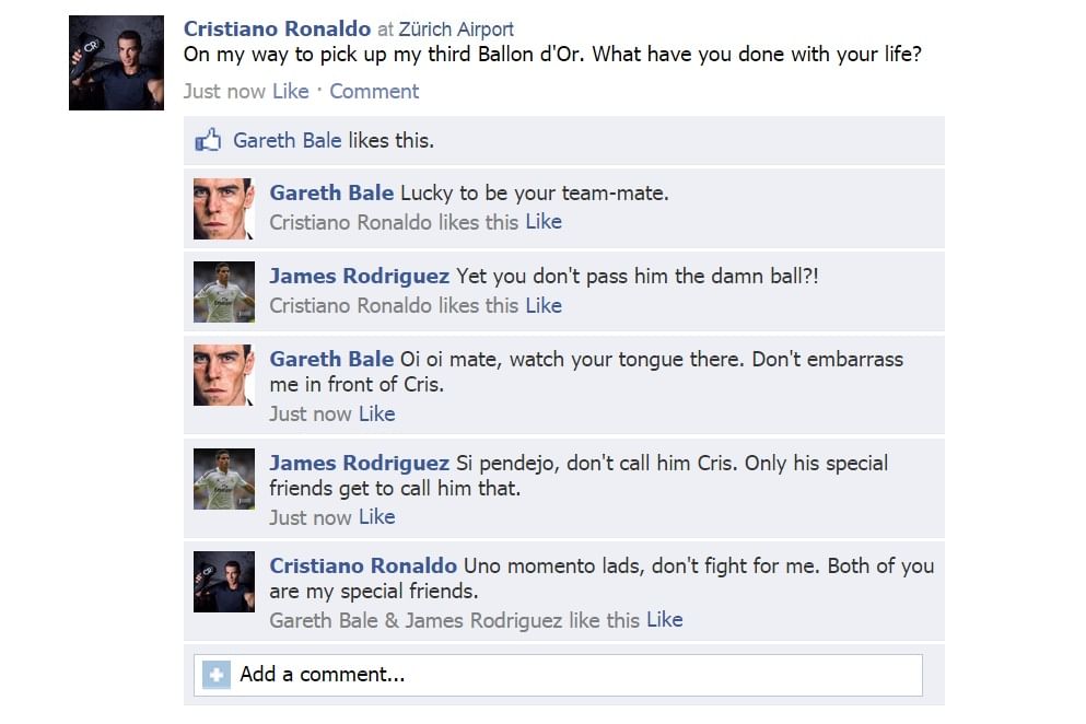 He gets his phone out and shows me Cristiano Ronaldo’s latest status update. Mind you, this is his personal account we are talking about, not his facebook page.