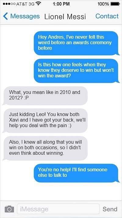 Here is a leak of a conversation between Messi and his teammate Andres Iniesta’s help. Too bad the Spanish midfielder has problems of his own.