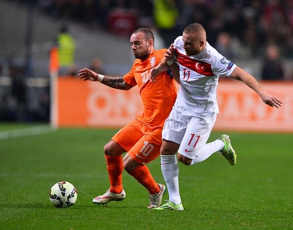 The Dutch had to deal with the Turkish challenge without star strikers Robin van Persie and Arjen Robben, who were both absent with injuries. The Turks also missed an important player in suspended Arda Turan.