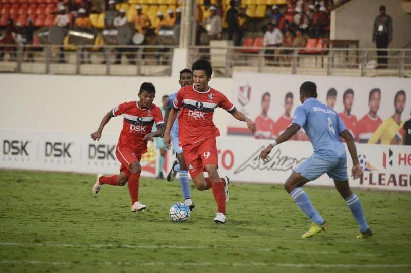 DSK Shivajians, who have now played three home games on the trot, started the game very much on the front foot, earning two corners within the first three minutes. With much of the first 15 minutes played in the visitors’ half, the first real chance of the game fell to Kim Song Yong in the 12th minute, when a floated ball played in by Juan Quero was headed just over the bar by the big North Korean striker.