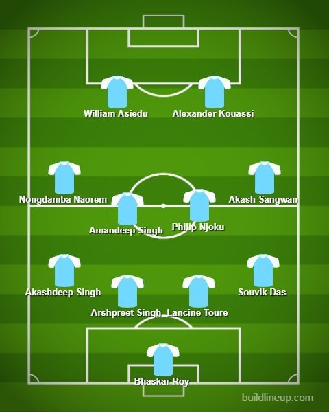 Minerva Punjab (4-4-2): Bhaskar Roy (GK), Souvik Das, Lancine Toure, Arshpreet Singh, Akashdeep Singh, Philip Njoku, Amandeep Singh, Akash Sangwan, Nongdamba Naorem, William Opoku Asiedu, Alexander Kouassi Kouame