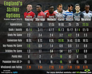 Roy Hodgson has an abundance of striking talent to select from this season ahead of the March international. With that, we compare the displays of the top performing English strikers from the 2014/15 Premier League season.