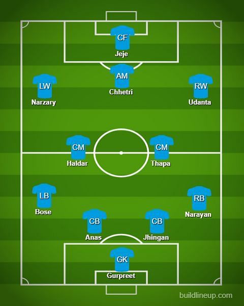 India Predicted XI: Gurpreet Singh Sandhu (GK); Narayan Das, Anas Edathodika,Sandesh Jhingan, Subhashish Bose; Pronoy Haldar, Anirudh Thapa; Udanta Singh, Halicharan Narzary; Sunil Chhetri (C), Jeje Lalpekhlua