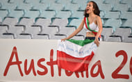 On social media, a few women have become very well known due to the photographs, especially the woman who is seen displaying the national flag with the central white strip carrying the message written in English “Will Alireza marry me?” The message was for the popular goalkeeper Alireza Haghighi.