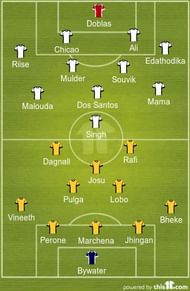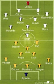 Delhi Dynamos (4-2-3-1): Toni Doblas, Anwar Ali, Anas Edathodika, John Arne Riise, Chicao, Hans Mulder, Souvik Chakraborty, Florent Malouda, Dos Santos, Mama, Robin Singh