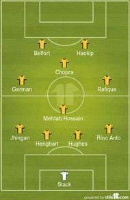 Coppell would seem to stick with a 4 man defense guard with Rino Anto and Jhingan supporting the attacks through the flank. The midfield also seems to be pretty much balanced with plenty of quality and options at the disposal of coach Coppell, who himself was a winger and also believes in attack through the wings. Mehtab Hossain is most likely to play the role of the defensive midfielder in the lineup and do the dirty work for Coppell so that he can play more foreign talent up front in for the goal.