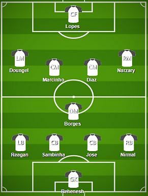 NorthEast United FC Probable Starting XI: TP Rehenesh, Nirmal, Jose, Sambinha, Reagan, Borges, Diaz, Doungel, Marcinho, Narzary, Lopes.