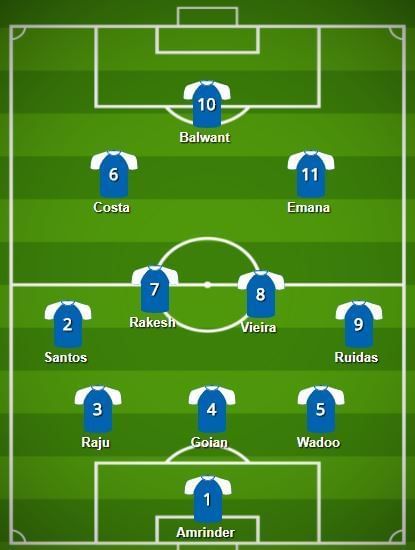 Mumbai City FC Probable Starting XI: Amrinder, Wadoo, Goian, Raju, Vieira, Rakesh, Emana, Ruidas, Costa, E. Santos, Balwant