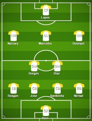 NorthEast United FC Probable Starting XI: Ravi, Nirmal, Sambinha, Jose, Reagan, Borges, Diaz, Doungel, Narzary, Marcinho, Lopes