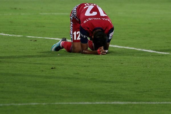 Jamshedpur had to swallow it badly. When Gallego pass was received by Ogbeche, he had three defenders surrounding him, with another one behind preparing for the final tackle. Ogbechhe had fractions of a second to think what he will do.