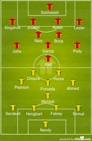 Mehtab Hossain is expected to be deployed in his favored role of a holding midfielder and act as a link between midfield and attack, while launching long balls for Iain Hume to thrive upon.