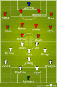 Delhi Dynamos FC (4-4-2): Kristof van Hout, Naoba Singh, Wim Raymaekers, Anwar Ali, Souvik Ghosh, Francis Fernandes, Hans Mulder, Bruno Herrero Arias, Shylo Malsawmtluanga, Mads Junker, Alessandro Del Piero.