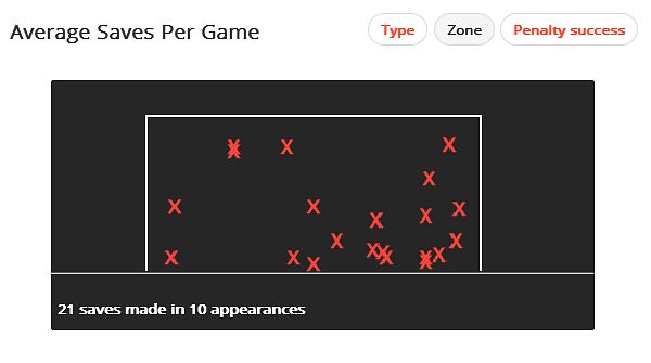 Per game, the England stopper has averaged 2.1 saves per 90 minutes across his ten appearances. This is up from an average of just 1.22 saves per game before his mid season spell on the bench.