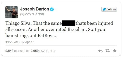 Joey Barton, never one to hold himself back, came up with the following tweet: