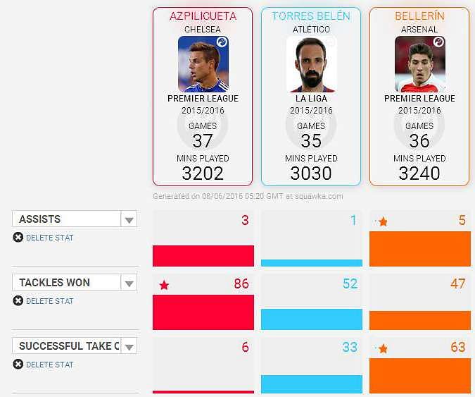 Going by the stats Juanfran provides a direct route to attack the Atletico way whereas Azpilicueta is the soundest defensive option with the added bonus of surprise goals and assists. Meanwhile, Hector has the makings of a world-class right-back who could cement his place in La Furia Roja’s starting line-up in the near future.