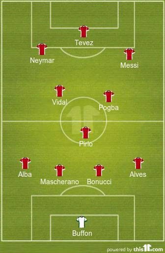 If the defence is dominated by the Catalans, the midfield is dominated by the Bianconeri. Taking their place in midfield is the triumvirate of Juventus midfielders in Andrea Pirlo, Paul Pogba and Arturo Vidal. Of the three, only Vidal wasn't an automatic choice and makes it into this side because of Andres Iniesta's injury worries ahead of the final.
