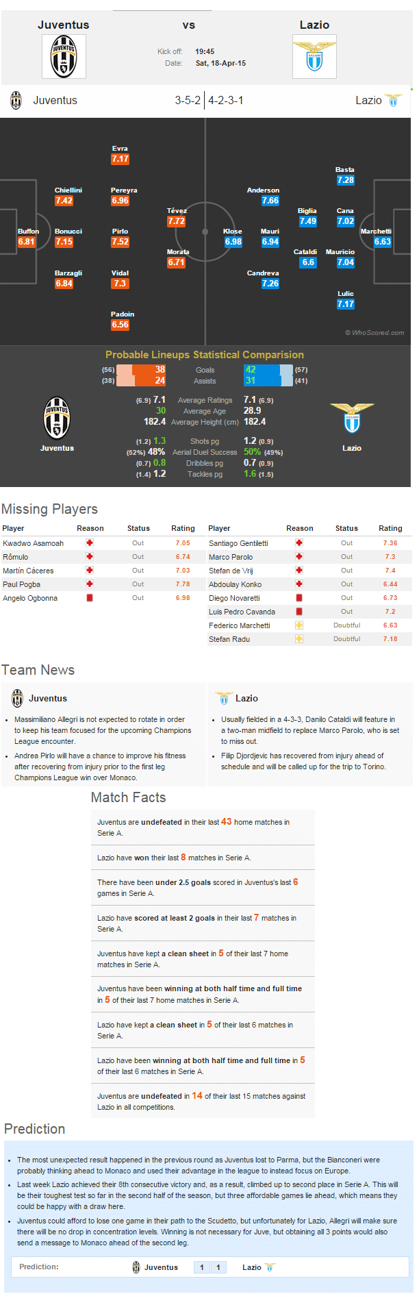 Juventus-Lazio Statistical Preview