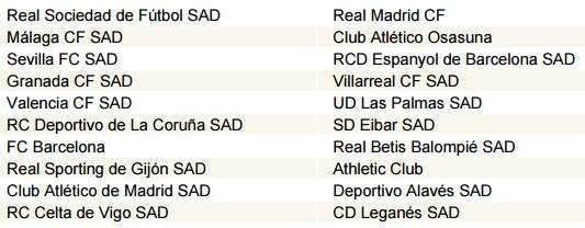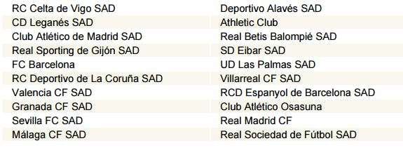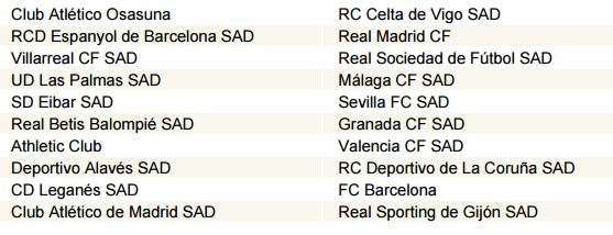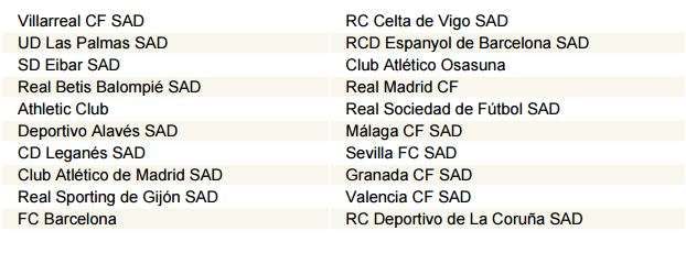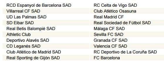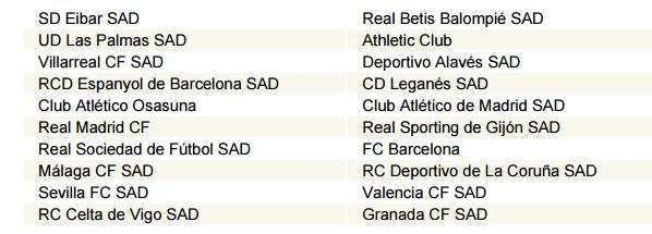 Gameweek 19: 22/01/2017. The teams on the left will play at home. The reverse fixture (matchday 38) will take place on 21/05/2017