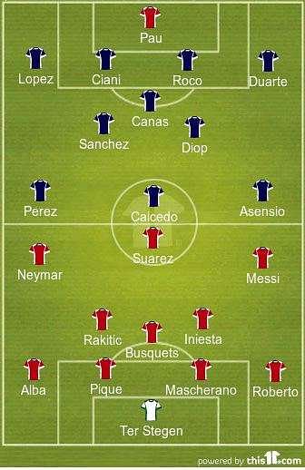 Barcelona (4-3-3): Ter Stegen; Roberto, Pique, Mascherano, Alba; Rakitic, Iniesta, Busquets; Messi, Suarez, Neymar