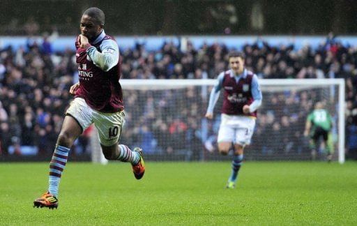 Aston Villa’s midfielder Charles N’Zogbia (L) celebrates scoring at Villa Park in Birmingham, West Midlands, England, on February 10, 2013. Aston Villa were forced to settle for just a point in their battle against relegation as they were held to a 1-1 draw at home to Fulham on Saturday.