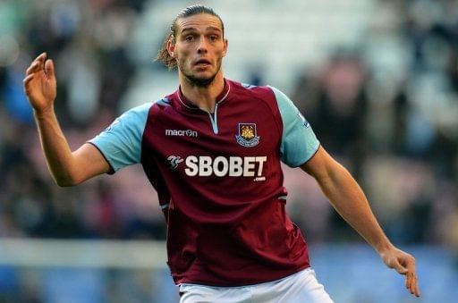 West Ham United’s striker Andy Carroll in action at The DW Stadium in Wigan, north-west England on October 27, 2012. Carroll celebrated his return to the West Ham United team with a second-half goal to earn his side a 1-1 draw at in-form Southampton in the Premier League.