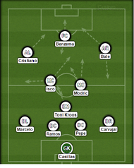 The other major fact to this tweak was Carlo Ancelotti’s subtle change of the system. Real Madrid are no longer the outright 4-3-3 team they were last season. When without possession, they shift to a 4-4-2 in order to make-do for the absence of the tenacity that Angel di Maria provided last season.