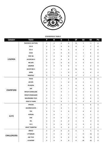 TCS B proved to be too strong for their counterparts in group E as they comfortably established their dominance by winning both their matches scoring 8 goals and conceding just one goal, against JP Morgan, in their two matches. In the other group game, SAP beat JP Morgan 6-0, but their 3-0 loss to TCS B proved to be the final nail in the coffin as far as their chances of qualifying for the Legends Cup was concerned.