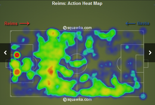 Their heat-map clearly shows their game-plan, attack down the wings and look for the midfield to provide support through the centre with great off the ball movement. They completed 82% of the 506 passes they attempted, again with the majority of the moves being built down the channels. Nicolas De Preville’s opening goal came after a blistering run down the left from Olivier Fortes, he found the striker just outside the box, and his finish beat Landreau low into the corner. Grzegorz Krychowiak’s penalty made it two at half-time.