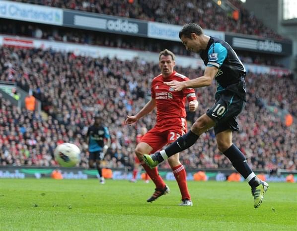 The magic in question wasn’t so much in the finish, as it was in the deliciously whipped cross from Bacary Sagna that evaded all Liverpool defenders and fell plop on van Persie’s head. He wouldn’t miss that from five yards, and Arsenal were offered an unmerited reprieve.