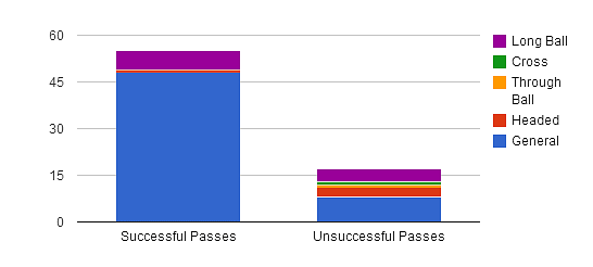 His pass map from that game again shows his eagerness to quickly move the ball forward, with the majority of his passes going forward, and many going long.