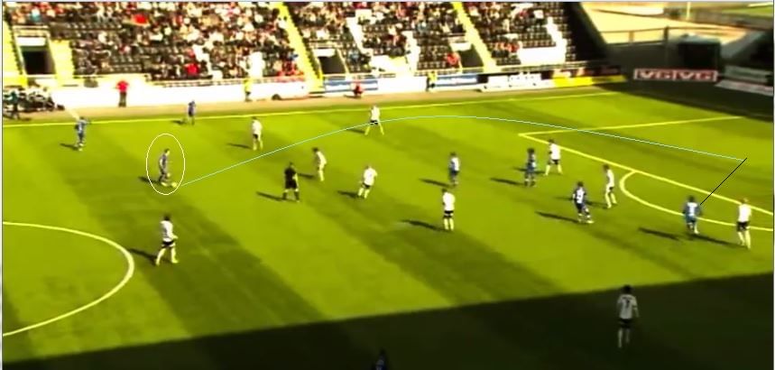 Of-course such passes would be meaningless if his teammate doesn’t executes his run perfectly which also comes down to the tremendous understanding that Eikrem has with his teammates. Also, thanks to his understanding, it makes it possible for him to play quick one-twos with his teammate on a regular basis. What’s fascinating to see is Eikrem’s wide array of passing maneuvers and the sheer calmness with which he completes them. His over the top balls, catching the defenders unawares are lovely to watch. One can only marvel at how beautifully he executes them. One example of this piece of magic is the following image.