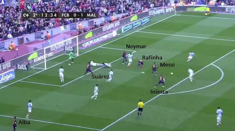 When Messi and Neymar were more or less cut out of the game, life became a lot easier for Málaga. Suárez was offside nearly every time he touched the ball and couldn't do an awful lot individually. Rafinha and Iniesta were struggling to create anything, and their only offensive contributions were the runs made into the box, waiting for a delivery from out wide. The moves were predictable and barely forced Málaga to break a sweat.