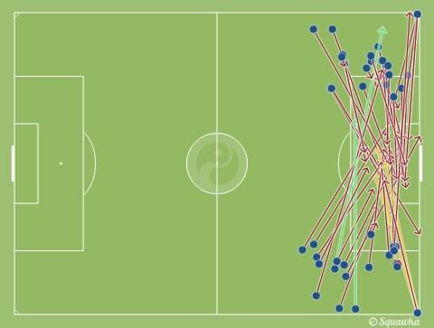 Not to mention, Barcelona fired a total of 48 crosses into the box, something that is quite uncharacteristic for the side that isn’t known for its aerial abilities. Below there is an infographic of Barcelona’s crosses in the match [via Squawka]: Too few of them were successful, and one can ask why there were so many of them in the first place.