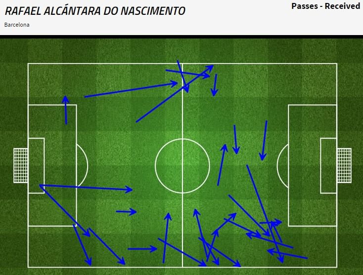 For comparison, in the previous league match against Levante, Ivan Rakitic completed 59 passes in 62 minutes playing in the same position. There was a drastic change against Málaga, and it can be seen in the result.