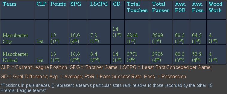 Manchester City and Manchester United have made blistering starts to the new Premier League campaign, with both teams posting similar returns in the first five games of the season: four wins, sixteen goals scored and two conceded. Equally important is the fact that City and United have become the league's current joint-leaders by pulverizing most of the adversaries in their path.