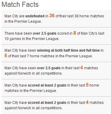 - Manchester City have won all 4 of their league games at home this season and will be eager to keep up their impressive form in Manchester with the welcome of Norwich City. Sergio Agüero, who netted at the weekend, will be the key man to the Citizens, with the Argentine having scored 4 goals in 3 league starts against Norwich.