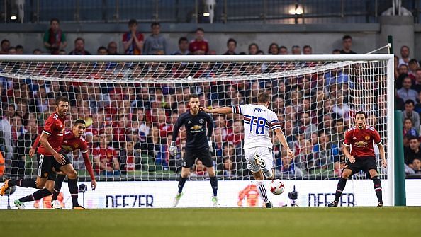 Daley Blind’s over-hit back-pass for De Gea almost saw the ball roll into the back of the net only for the Spanish ‘keeper to reach out a palm to stop it. In the process, they conceded a free kick inside their own 18-yard box, and although that was cleared away, it was hard not to wonder how different the outcome could have been against a superior dead-ball specialist.