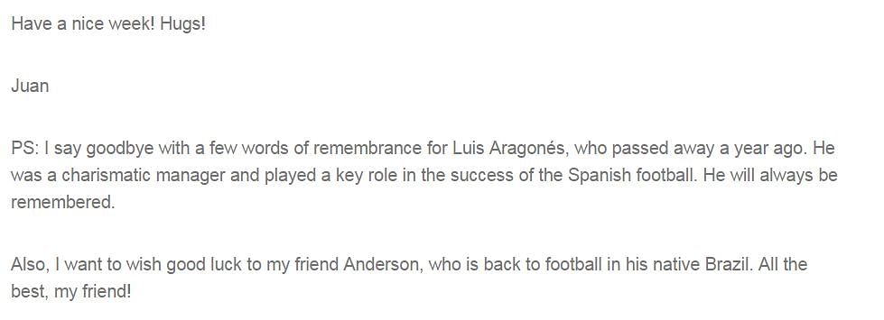Juan Mata, Anderson team-mate with Red Devils, confirmed the news by bidding adieu on his personal blog : "I want to wish good luck to my friend Anderson, who is back to football in his native Brazil. All the best, my friend!