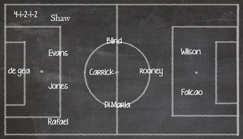 QPR (4-5-1): Green; Isla, Dunne, Caulker, Hill; Vargas, Henry, Barton, Fer, Taarabt; AustinUnited (4-1-2-1-2): de Gea; Rafael, Jones, Evans, Shaw; Carrick; Di Maria, Blind; Rooney; Wilson, Falcao