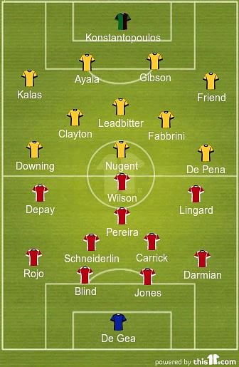 Manchester United: De Gea; Darmian, Jones, Blind, Rojo; Carrick, Schneiderlin, Depay, Lingard, Pereira; Wilson