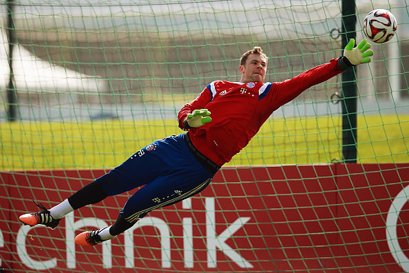 Manuel Neuer rushed out his box to make a sliding challenge which worked only partially, so he got back up and produced excellent second tackle on the same Al Hilal player.