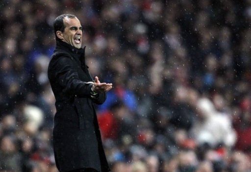 Wigan manager Roberto Martinez shouts from the sidelines during the Premier League match against Arsenal on May 14, 2013. He has refused to confirm his future lies with the FA Cup winners after Wigan’s 4-1 defeat at Arsenal confirmed their relegation from the Premier League.