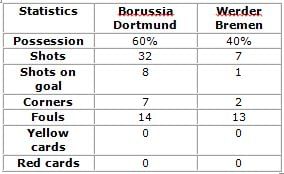 Both teams came into the game having won their respective first two fixtures of the season. Bremen also were the only team in the Bundesliga that had not conceded a goal in the opening two games. Bremen had 1-0 wins over Eintracht Braunschweig and Augsburg. Incidentally, the same two clubs had been Dortmund’s opponents in the first two rounds – Dortmund beating Augsburg 4-0 & then Braunschweig 2-1.