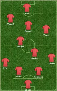With Nani and Valencia, both watching the match from the stands, Sir Alex does not have many options on the wings. He can go with either Welbeck to play on the left and Young on the right or Rooney on the left and Young on the right. But playing Rooney on the flanks would be a waste as he can provide much more support – both attacking and defensively – from playing in the Attacking midfielder’s position. So, Welbeck to start on the left, Young on the right and Rooney as attacking midfielder would probably be an obvious choice. Welbeck will try and get in to the box as much as possible for crosses coming from the right, as most of United’s attacks come from the right with Rafael providing the width with his overlapping runs.
